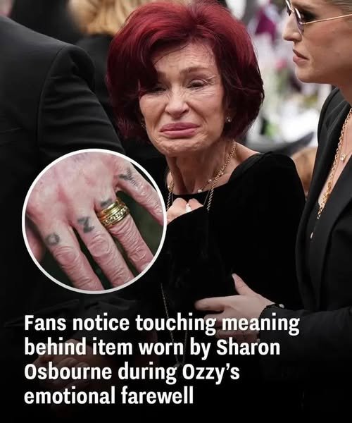 Amid the sorrowful scenes, viewers and fans noticed a particularly heartfelt detail: a gold ring worn on a chain around Sharon Osbourne’s neck.