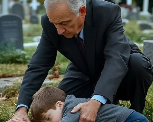 That rainy afternoon, as he approached Leo’s grave, he noticed something strange. A young boy, no more than ten, sat cross-legged nearby, staring solemnly at the headstone. Dressed in ragged clothes, the child looked severely out of place.