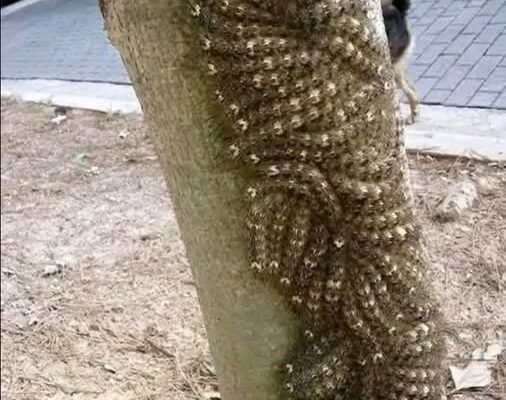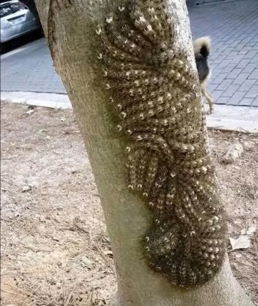 What looked like a beautiful natural pattern was actually a dense cluster of Lonomia caterpillars—one of the most venomous insects in the world. Perfectly camouflaged against the bark, they blend in so well you’d never suspect the danger.