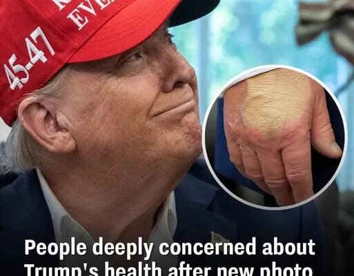 The picture show Trump’s hand by his side, with a mismatched pale color covering a large portion of his skin.