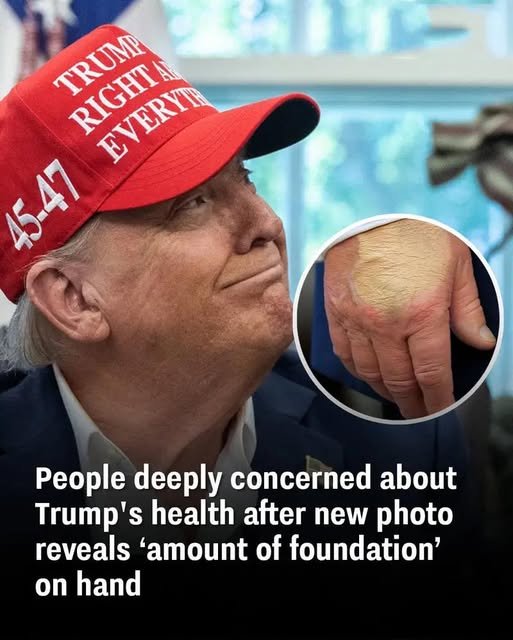 Donald Trump has caused concern about his health after a large amount of foundation was spotted on his hand.