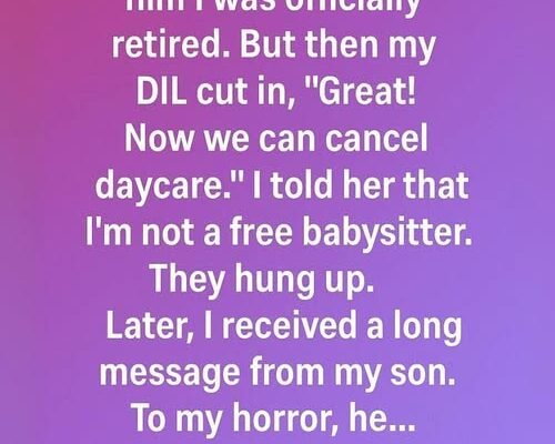 But before he answered, my daughter-in-law’s bright voice came through with words I never saw coming: “Perfect! Now we can cancel daycare!” In seconds, my dream of freedom collided with their expectation of duty.